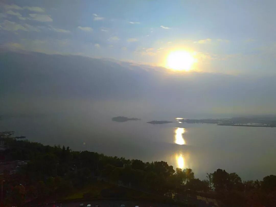 第二天早上7:30,我們到一樓吃早餐,碰到大伙,大家的起得早啊~自助早餐吃完,大家就在酒店大廳商量今天的行程,跟大部隊去環湖了,然后再去太陽山。